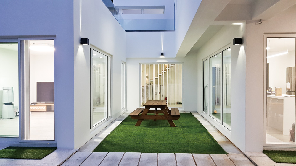 The facade to the road has no openings except for the entrance. This closed exterior, which can be somewhat simple, has a colorful facade through the shadows of two existing ginkgo trees. With the sunshine of the day and the dim light of the night, you can see a new face every moment with the amusement of the shadow. This is a picture drawn by nature. Thus, through the existing trees, Kirin Byeolseo dreams of becoming one with nature and home.
