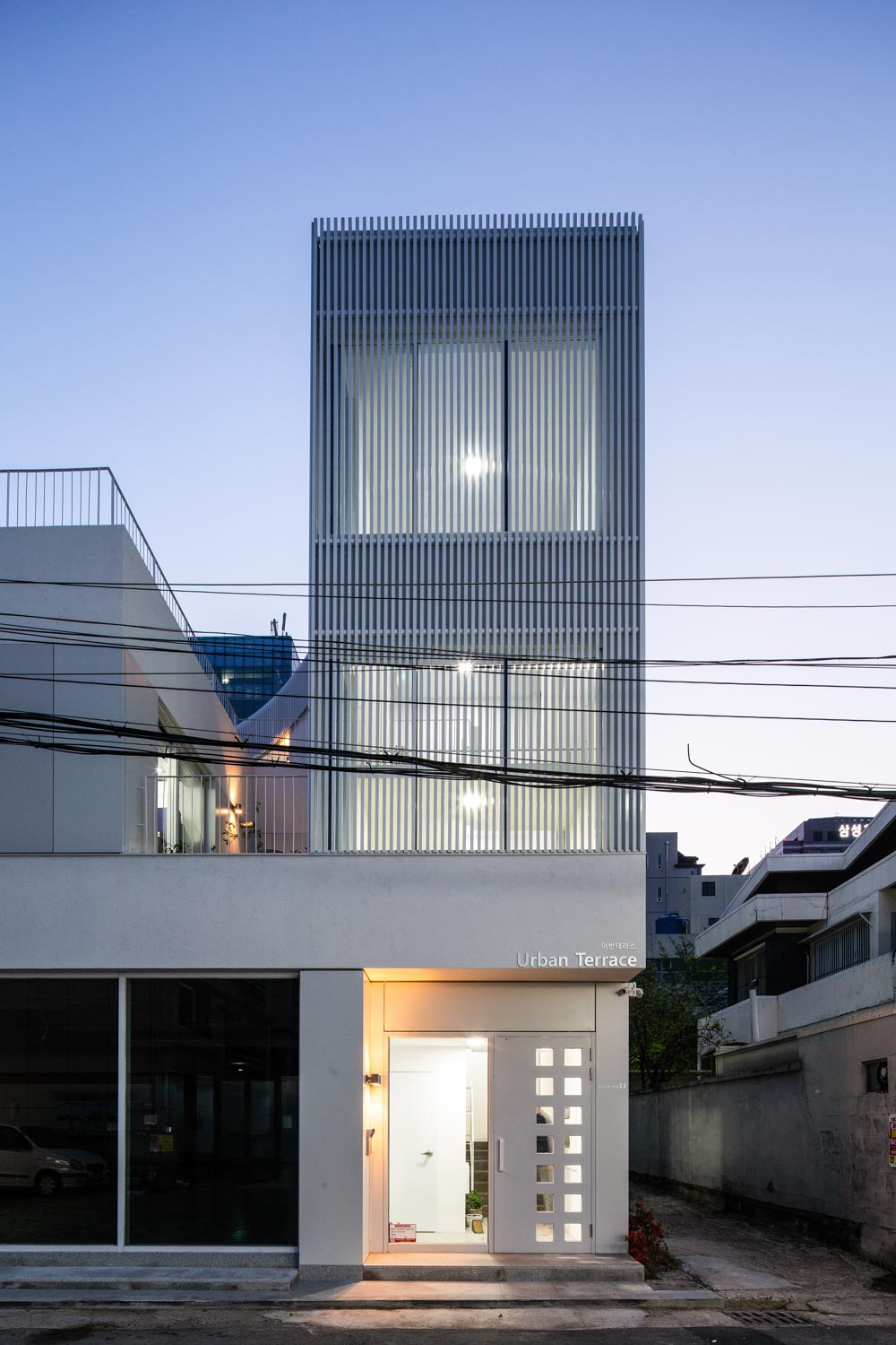 어반테라스는 대구광역시 수성구 범어동에 위 치한 여러 개의 테라스를 가진 상가주택이다. 대지는 대구의 중요한 대로 중 하나인 동대구 로의 이면도로에 위치한다. 주변상황은 기존 에 있던 낡은 단독주택과 연립주택이 주상복 합건축물과 오피스로 바뀌어가고 있는 과도 기적 상황에 있다. 우리는 과밀의 대도시에서 살아가는 이들을 위한 대안적 건축물이 되길 바라며 어반테라스를 설계했다. 중간적 성격 을 갖는 외부공간의 가능성을 그 대안으로 검 토하며 디자인했다.