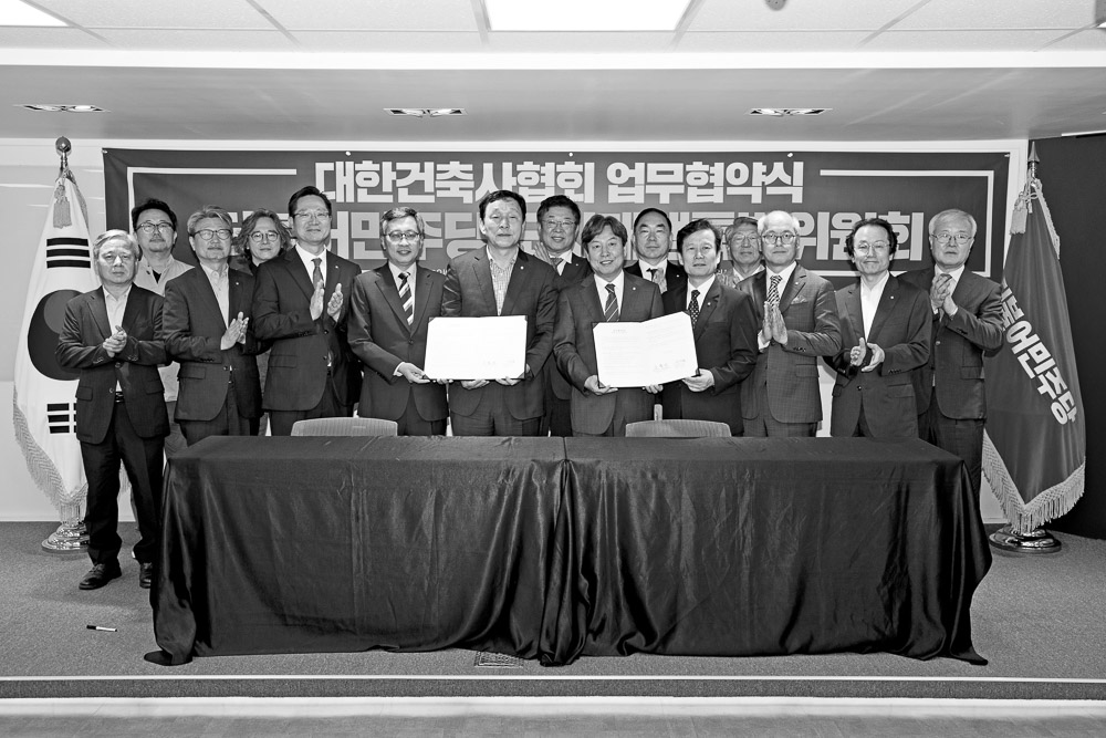 대한건축사협회는 7월 10일 서울 영등포구 여의도 더불어민주당 당사 2층 대강당에서 더불어민주당 도시 재생특별위원회와 업무협약을 맺고 도시재생사업을 통해 지역경제 및 공동체 활성화를 도모하기 위한 상호 협력체계를 구축하기로 약속했다.