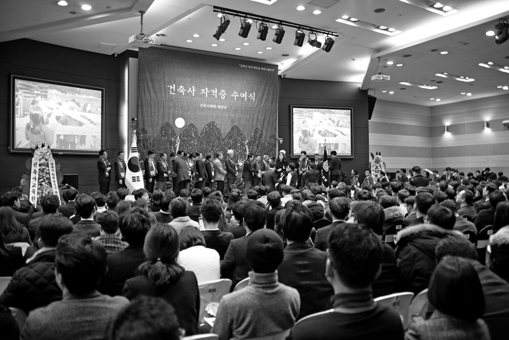 대한건축사협회(이하 사협)는 1월 9일 서울 서초동 건축사회관 1층 대강당에서 ‘2017년도 건축사자격증 수여식’을 개최했다. 이날 수여식은 국토교통부 건축문화경관과 홍성호 서기관, 신동희 주무관, 사협 임원진, 시·도건축사회 회장들과 합격자 축하객들로 성황을 이뤘다.