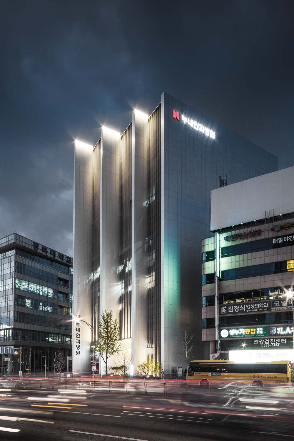 | 눈빌딩 설계자 | 김기석_ (주)기단 건축사사무소 건축주 | 주식회사밝은빛, (주)하이눈커뮤니티 감리자 | 김기석 _ (주)기단 건축사사무소 시공사 | (주)삼진씨앤씨 설계팀 | 손만영, 금창영 대지위치 | 대구광역시 중구 달구벌대로 2179 주요용도 | 의료시설(병원) 대지면적 | 987.20㎡ 건축면적 | 664.14㎡ 연면적 | 7,176.62㎡ 건폐율 | 67.28% 용적률 | 648.02% 규모 | 지하 1층, 지상 12층 구조 | 철근콘크리트조 외부마감재 | 아노다이징 내부마감재 | 노출콘크리트, 친환경페인트 설계기간 | 2016. 06 ~ 2016. 09 공사기간 | 2016. 10 ~ 2018. 02 사진 | 윤동규 구조분야 : 강구조안전기술 기계설비분야 : 명신 ENG 전기분야 : 선광엔지니어링 |