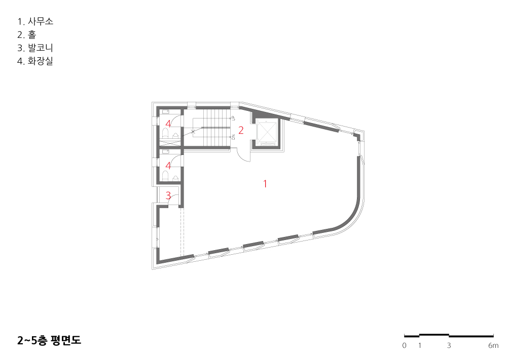 | 35520 설계자 | 신현보 신현보 건축사사무소 건축주 | 김승현제이 감리자 | 김영훈 시공사 | 라우종합건설 설계팀 | 이수지 대지위치 | 서울특별시 중구 동호로 195-15 주요용도 | 근린생활시설(휴게음식점, 사무소) 대지면적 | 196.99㎡ 건축면적 | 116.99㎡ 연면적 | 598.92㎡ 건폐율 | 59.39% 용적률 | 304.04% 규모 | 지상 6층 구조 | 철근콘크리트조 외부마감재 | 점토벽돌, 세라믹타일, 투명로이복층유리 내부마감재 | 노출콘크리트, 수성페인트, 세라믹타일 설계기간 | 2016. 09 ~ 2017. 04 공사기간 | 2017. 05 ~ 2018. 07 사진 | 노경 구조분야 : 한길구조 기계설비분야 : 정연엔지니어링 전기분야 : 정연엔지니어링 소방분야 : 정연엔지니어링 |