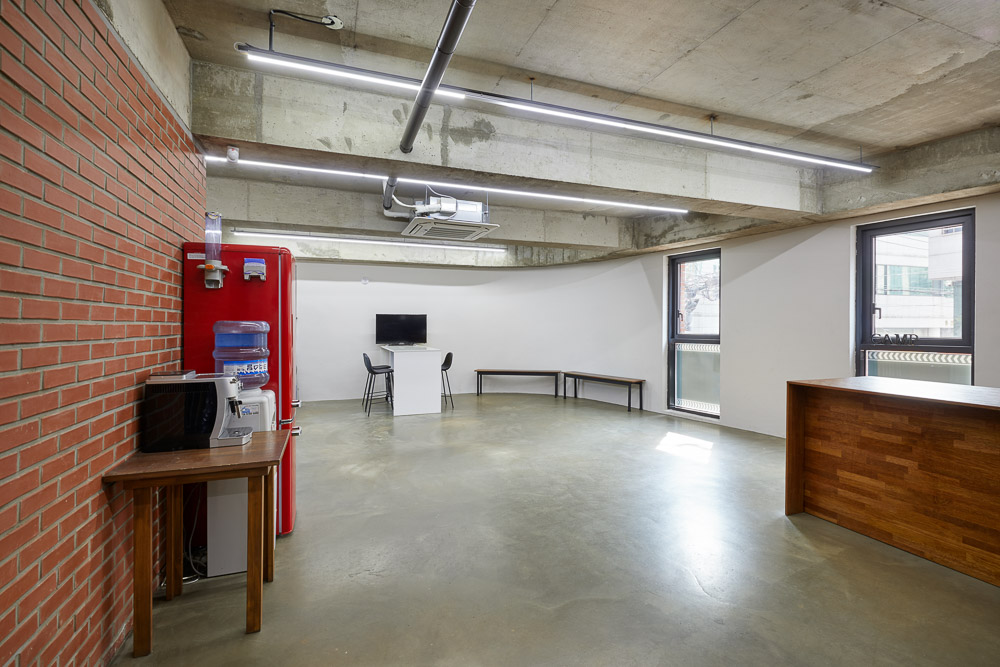 It is located on the inner alley corner of Shindang-dong, behind the Yakushu Station intersection. As a result of the observation, it was a side street but there a large floating population. We talked with the client and quickly set the goal of building a cafe on the first floor and renting offices on the upper floors.