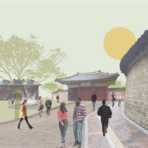 이렇게 정동길 일대를 사람들이 많이 찾는 이유에는 덕수궁을 비롯하여 조선의 마지막 역사인 대한제국의 모습이 스며들어 있다는 점을 빼놓을 수 없을 것이다. 위의 네 사진처럼 과거의 흔적이 우리가 보던 정동길의 이곳저곳에 남아 있었다는 것을 알 수 있다. 현대 사회가 형성되어 가면서 과거의 모습들이 조금씩 변화되어 왔고, 최근에 개방된 ‘고종의 길’처럼 사라졌던 역사 속 산물들을 복원시키는 작업도 점진적으로 진행되고 있다. 이러한 역사적 요소들에 따라 5개의 ‘대한제국의 길’이 선정되었고, 그중 4개의 길을 각자 맡아 돌아보며 그 길의 거점과 이야기에 대해 콜라주(Collage)와 함께 풀어보고자 한다.
