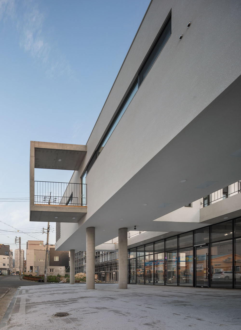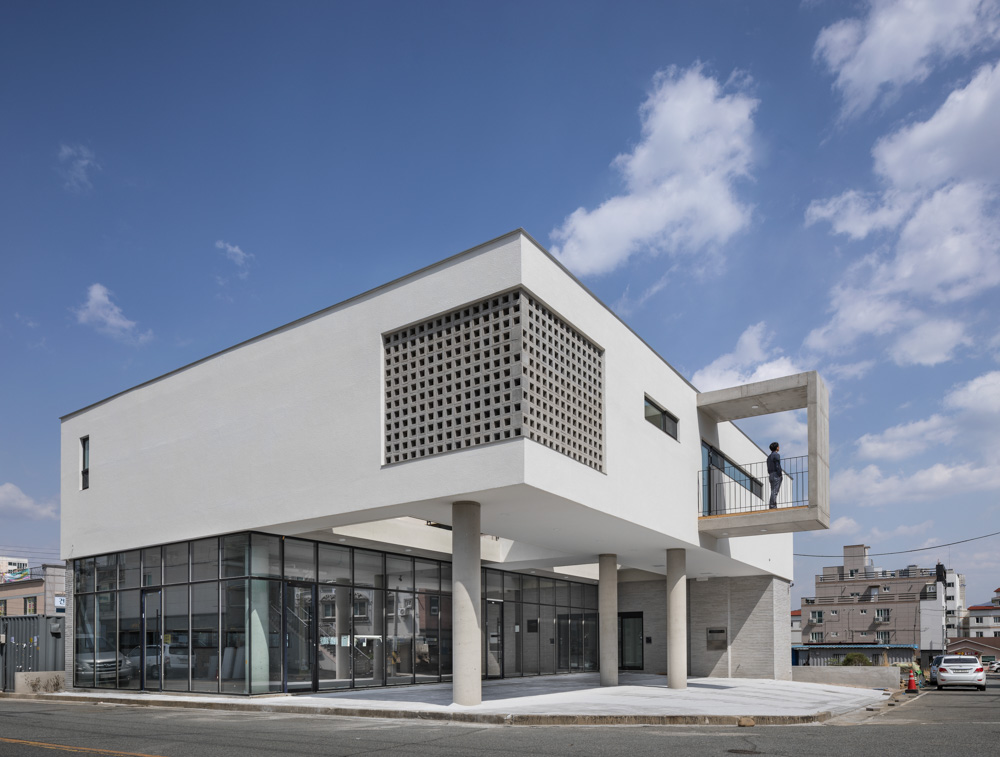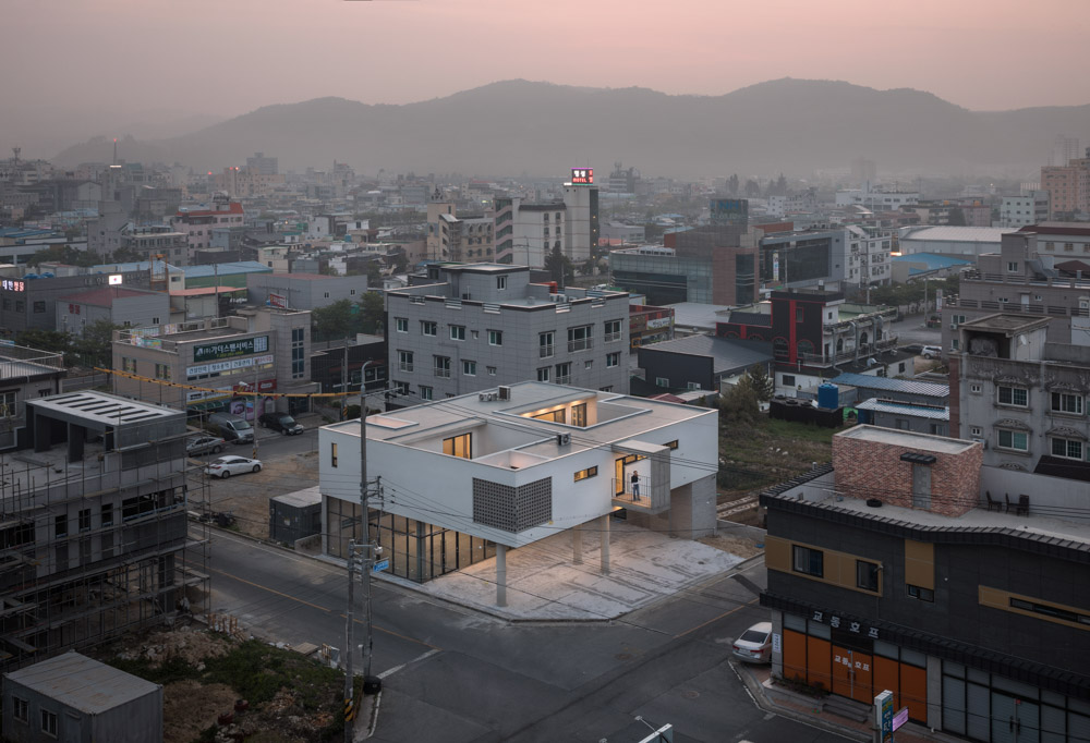 The project is a new interpretation of a house with a rental shop for the client’s parents in the suburbs of Ulsan city where the typical multi-family houses spread out homogeneously.
