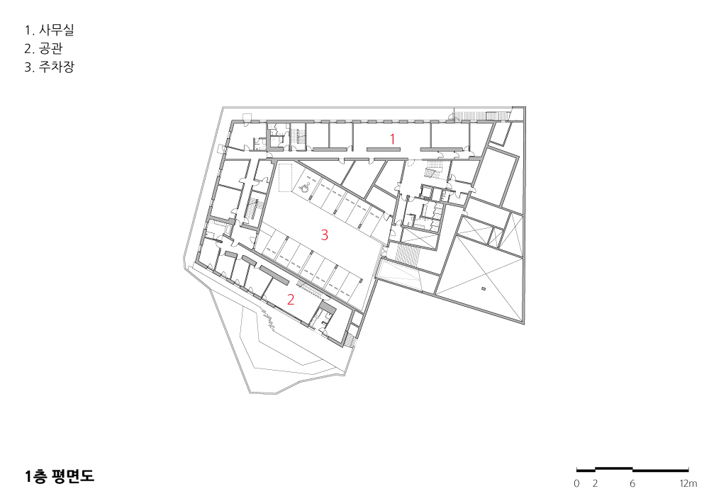 New Swiss Embassy in Seoul Architect | Nicolas Vaucher, Daniel Pantillon_Burckhardt+Partner SA, Swiss Inho Lee_Erae Architects Client | Swiss Federal Office for Buildings and Logistics, Jodok Brunner, Cedric Pernet Supervisor | Minhee Jung _ Erae Architects Construction | EAN R&C Location | 77, Songwol-gil, Jongno-gu, Seoul Program | Foreign Official Residence Site area | 2,377.30㎡ Building area | 983.30㎡ Gross floor area | 2,895.94㎡ Building to land ratio | 41.36% Floor area ratio | 103.75% Building scope | 3F Structure | RC + Wood structure Exterior finishing | - Wall&Fence : Exposed concrete(Cedar plank), Aluminium+Oak wood windows - Court : Wood windows and doors(Accoya Wood), 45mm Low-E Triplex Glass - Roof : 0.7mm Zinc Aluminium Sheeting Interior finishing | - Wall : Water paint on plaster board&concrete wall - Ceiling : 3 Layer Board(concrete form / ceiling finish) - Floor : White oak wood flooring Design period | Jul. 2013 ~ Jun. 2016 Construction period | Jan. 2017 ~ Oct. 2018 Photograph | Hélène Binet, Inho Lee Structural engineer | INGENI / SQ Engineering Mechanical engineer | PLANAIR / NORTH STAR Engineering Electrical&Communication engineer | Christian Risse / Electrical Consultant Hyeob-In |