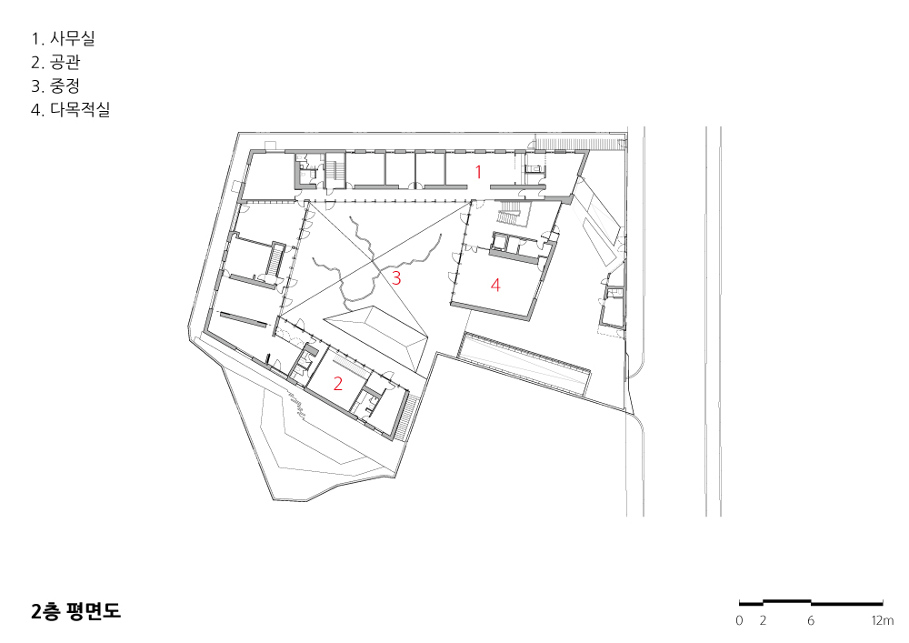 새 스위스 대사관의 너른 안마당은 외교, 행정, 공보, 주거 등 각기 다른 기능을 한데 모으기 위해 전통 한옥 양식으로부터 영감을 받았고, 새 대사관의 삶은 과거의 서대문 주민들과 마찬가지로 마당을 중심으로 이어진다.