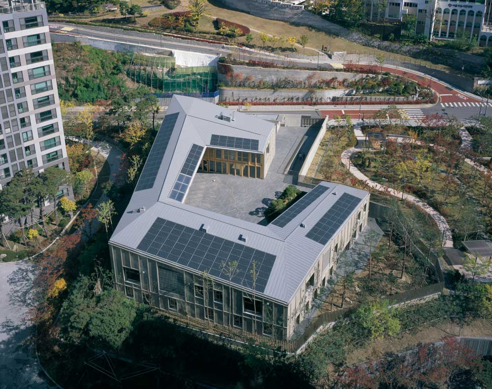 돈의문 마을의 급격한 변화에도 불구하고 새로운 대사관은 이곳의 옛 한옥, 정감 어린 골목길을 추억하고, 산성까지의 언덕 지형에 순응하여 나지막하게 걸터앉은 수평적 건물로 재탄생 시키고자 했다.