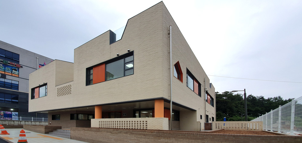 두 번째는 감독관(공무원)의 태도이다. 설계공모를 통한 결과물인데다가, 설계자가 이렇게 적극적인데, 모든 결정 권한을 사용자에게 넘기는 분위기에 놀라지 않을 수 없었다. 공공건축은 시민의 세금으로 지어지는 것으로 설계공모를 통해 검증된 설계자나, 실력이 검증된 공공건축가들에게 맡겨야 하거늘, 건축과는 무관한 사용자에게 그 결정 권한을 맡긴다니, 기절초풍할 노릇이다. 내·외부 색상을 정하는데, 며칠 동안 고심해서 색상넘버를 가지고 현장에 간 날이었다. 설계의도와 색상을 브리핑 했는데, 담당 감독관은 “설계자 의견은 그렇고, 원장님이 원하는 색은 무엇이냐며 현장에서 고르라”는 것이다. 결국에는 설계의도의 80%는 수용되었으나, 20%는 원장님의 취향에 의해 변경됐다. (외부의 주황색 포인트색상도 우리에게는 두 번째 대안이었다.)