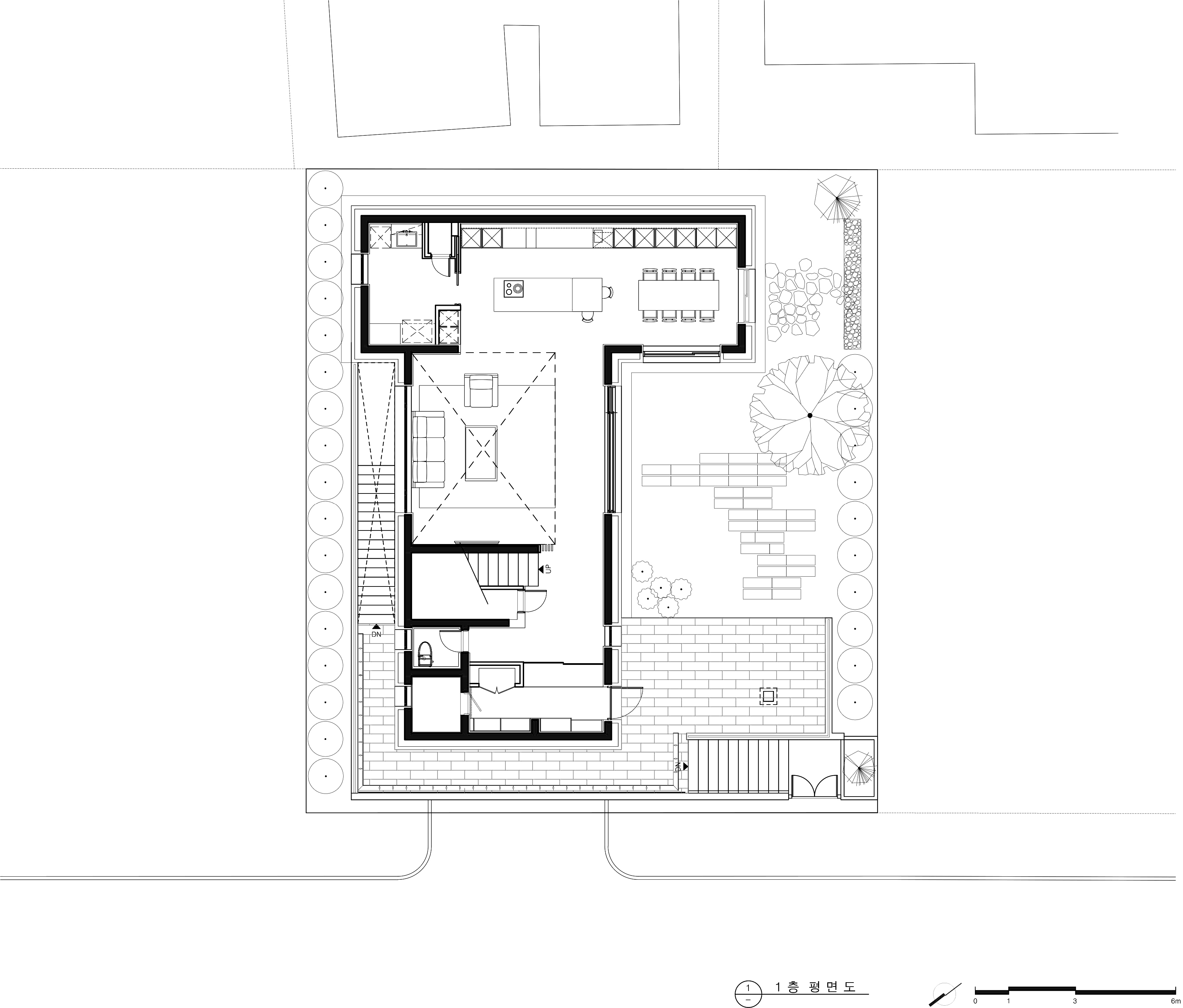 Also, the concept of the sequence and overlapped layers shown on traditional spaces are tried to be incorporated in this house for various space and landscape experiences which are usually used to be lack at the urban house. In addition, it was attempted to achieve visual and emotional connection by massing the weight of the hanok roof and by using the earth brick resembling the material character of the earth for the spatial connection of urban housing located in Hanok Village.