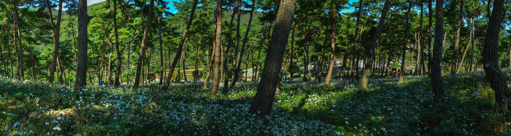 22만제곱미터 규모를 자랑하는 옥정호 구절초테마공원에서 9만제곱미터에 달하는 솔숲에 구절초가 피어 있다.