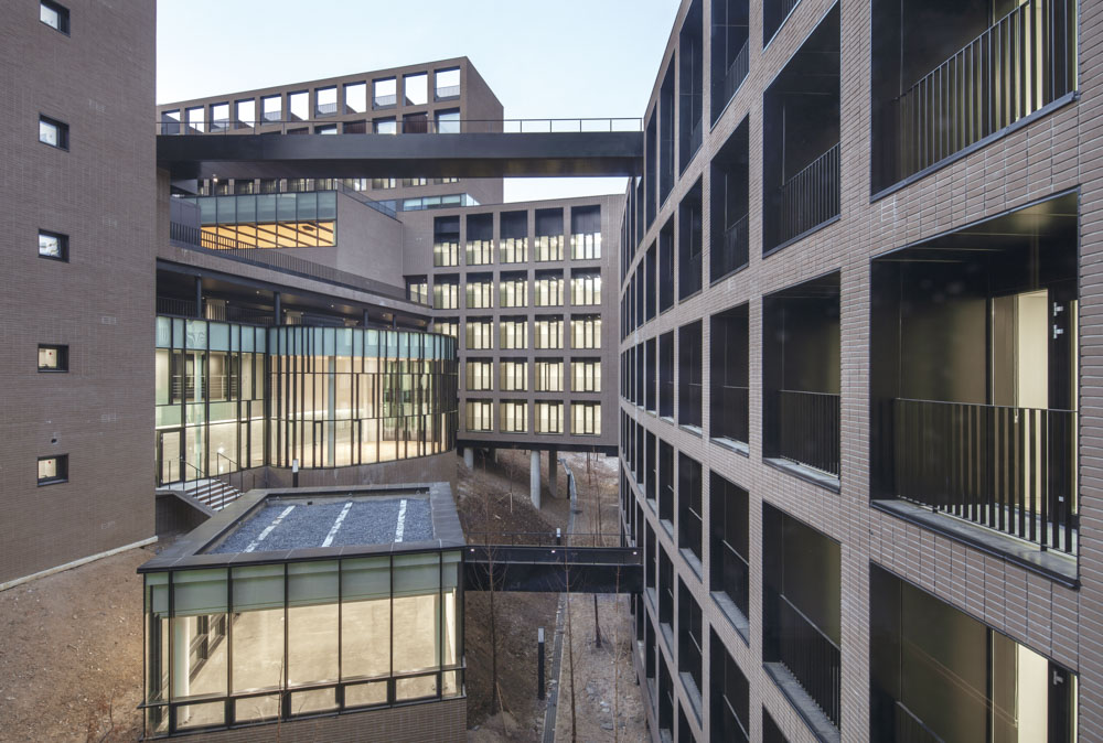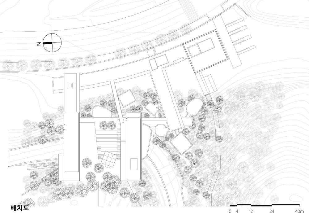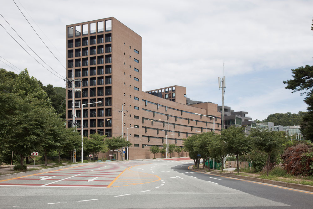 University is an academic institution pursuing universal values as the word “university” itself clearly denotes its meaning. Whole-person education is needed for this goal, and it would be achieved not by simply acquiring knowledge but by making efforts for self-development and learning from living in the real world. Under this understanding, the residential college was shaped as a very effective means. For students, coming into the residential college, even though they live there for a limited period of time, means that they cross the boundaries of the world they have lived so far. In some sense, it may mean that they renounce the worldly life and live a life of monks or nuns looking for physical, material and spiritual freedom. That’s why ‘academic monastery’ was named for this project. The monastery should have clear boundaries off from the secular world. The long wall is for such a feeling of seclusion from the outer world. Though the monastery is open to the existing campus areas, it is difficult to guess about its inside as it is not properly visible from the terrain outside of the university. The inside, however, is unexpectedly free. The residential buildings have freely-deployed shared places between them. The shared places are always very expressive of life and vigor derived from the flow of pedestrians. In the beginning of this project, ‘Academic monastery in forest’ was name of this project but the existing forest disappeared for the convenience of construction work. Newly planted trees are very young and small, but they will grow up in time. Therefore, this architecture has not been finished yet. It will be realized when the trees are well grown and the students living here become part of the landscape.