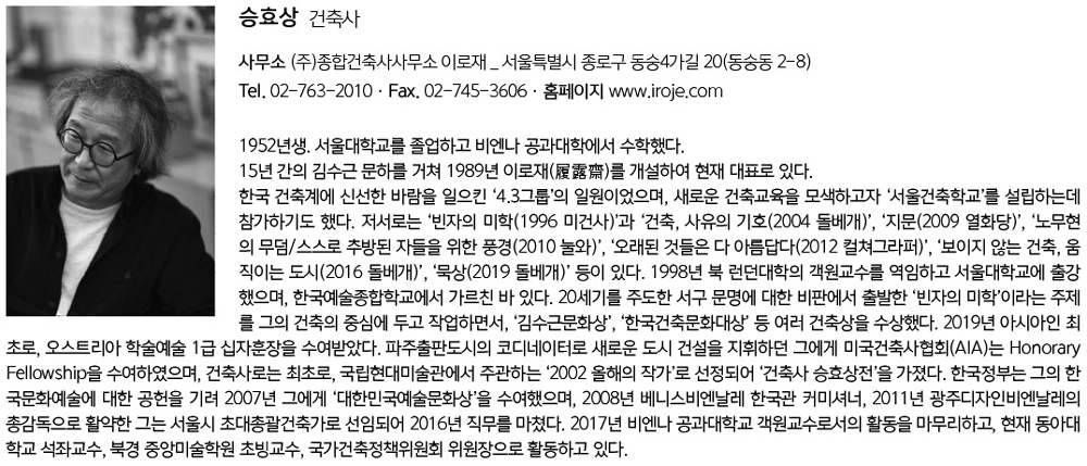 | 핑두 완커주택문화관 설계자 | 승효상_(주)종합건축사사무소 이로재 건축주 | 완커그룹 감리자 | 김성희 대지위치 | 중국 산동성 청도시 핑두 주요용도 | 주택문화관 대지면적 | 2,340㎡ 규모 | 지상2층 구조 | 철근콘크리트조 외부마감재 | 노출콘크리트, 내후성강판, 현무암 내부마감재 | 친환경페인트, 석재, 자작나무 설계기간 | 2011. 04 ~ 2012. 01 공사기간 | 2012. 10 ~ 2013. 07 사진 | 김종오 |