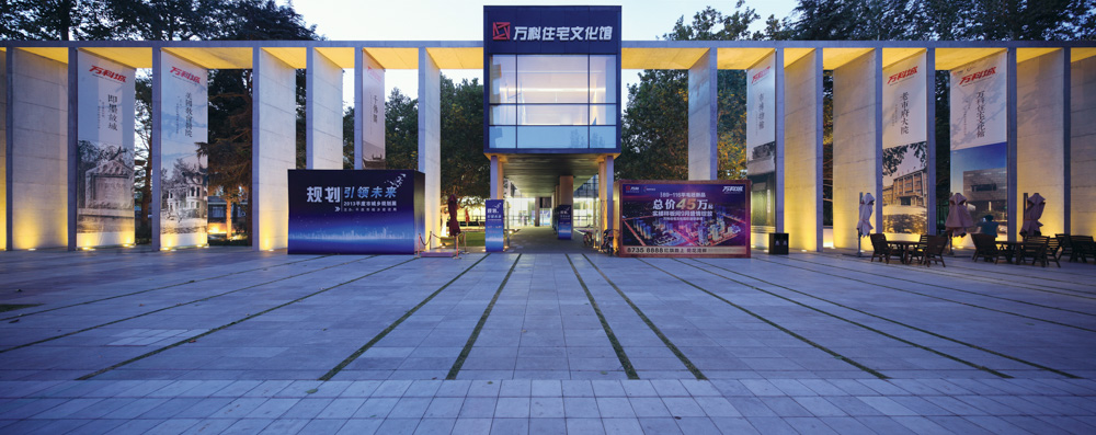 전체 개발을 맡은 완커그룹은, 전체 사업의 홍보관 겸 핑두주택문화관의 용도로 첫 번째 건물의 설계를 다시 주문했다. 이 주택문화관이 들어서는 장소는 나무가 울창하게 밀집된 시청사의 작은 부속건물의 땅이었다. 모두 2, 3백 년의 수령을 가진 나무는 보존해야 하는 대상이어서 건축물은 남아있는 빈 땅을 찾아 들어설 수밖에 없었다. 시민들에게 인지되어야 하는 목적의 건물인 만큼 전면도로와 연결되어야 하는데, 도로경계선에 콘크리트 프레임을 세워 내부와 연결시켜야 했다. 이 콘크리트 프레임에 가로미술관(street gallery)의 기능을 갖게 하면서 대지 끝에 겨우 들어선 건물과 진입로 위에 떠 있는 갤러리를 통해 잇게 했다. 그러니 여기서도 건축은 기존의 아름다운 나무들을 공간적으로 한정시키는 도구일 뿐이어서 또 존재하지 않는다.