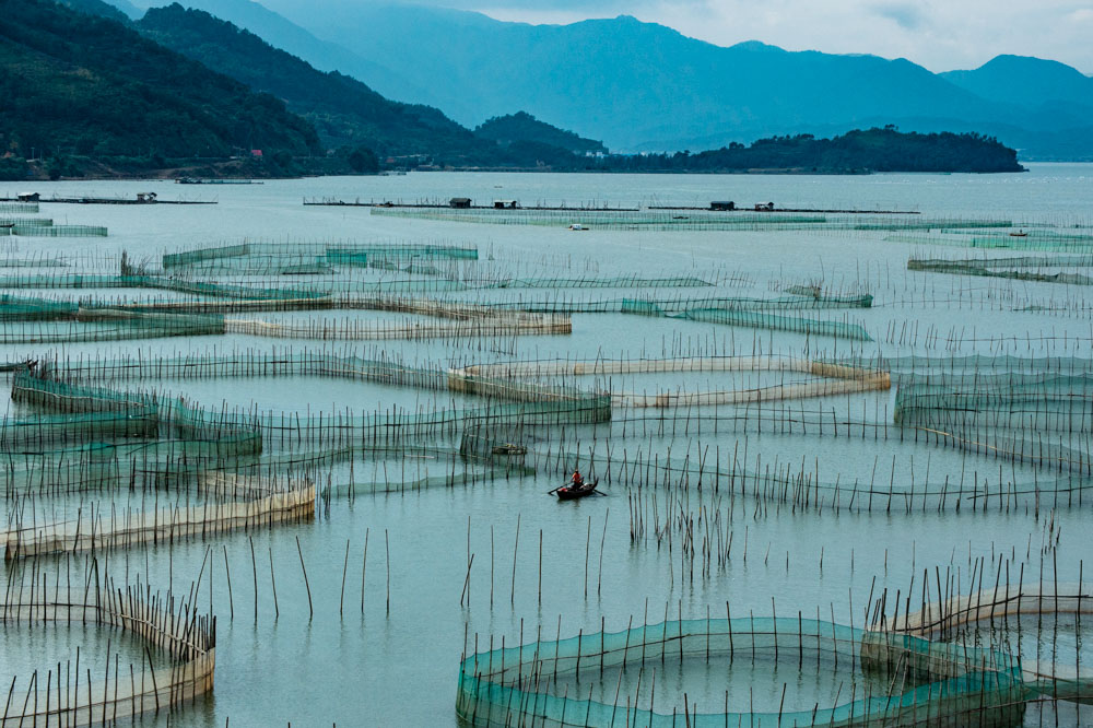대규모 새우양식장이 자리 잡고 있는 샤포마을은 동그란 그물 양식장이 그림처럼 아름다운 곳이다. 이런 풍경을 어부들이 의도적으로 만들지는 않았으리라. 본디 디자인이라 함은 다분한 의도와 합목적성을 전제로 하기 때문에 삶의 한 방편으로 만들어졌던 양식장의 아름다움도 의도해서 만든 것이라고 짐작되지는 않는다. 그러나 바다 위에 떠있는 양식장은 아름다운 풍광을 연출하고 있다. 양식장 사이사이로 한가로이 노를 저으면서 작업을 하고 있는 어부의 노랫소리가 여유롭게 내 귓전을 울린다.