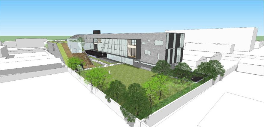 - 주변대지와 건물들의 형상을 따라 매스 형성