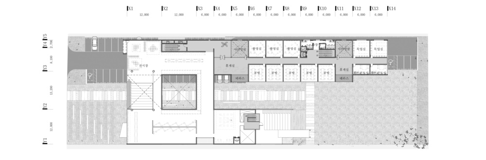 - 대지의 성격을 나누어 녹지와 건물 배치
