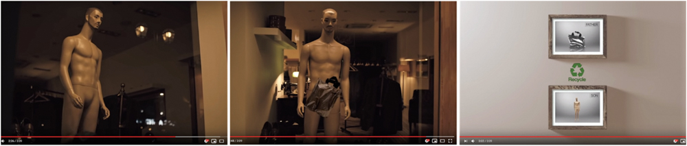 쓰레기를 재활용하면 다양한 물건들이 탄생한다. 그 당연한 사실에서 쓰레기는 재활용품의 아버지라는 발상을 한 것이 재미있다. 자신의 몸에서 탄생한 재활용품을 자식처럼 생각하고 위기의 상황에서 지켜주려는 쓰레기의 눈물겨운 부성애라니! 거기에 스타워즈의 대사까지 나오니 웃음이 터질 수 밖에 없다. 우리가 흔히 생각하는 것보다 훨씬 더 많은 물건을 재활용 쓰레기로 만들 수 있다고 한다. 광고를 보기 전에는 나도 비닐을 재활용하면 마네킹의 재료가 된다는 것을 알지 못 했다. 그러니 1회용품 사용을 적극적으로 줄이는 것은 물론 철저하게 재활용하는 노력도 필요하다.