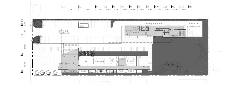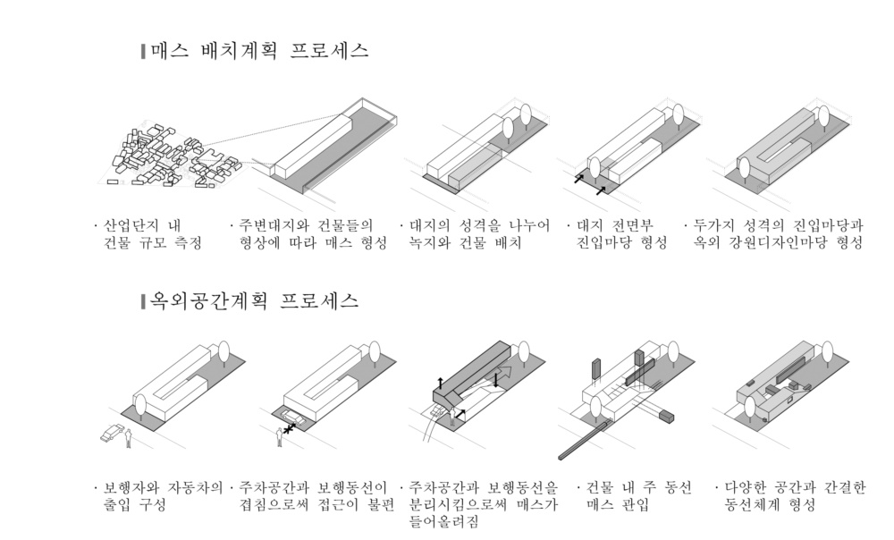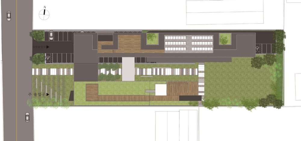 - 대지의 성격을 나누어 녹지와 건물 배치