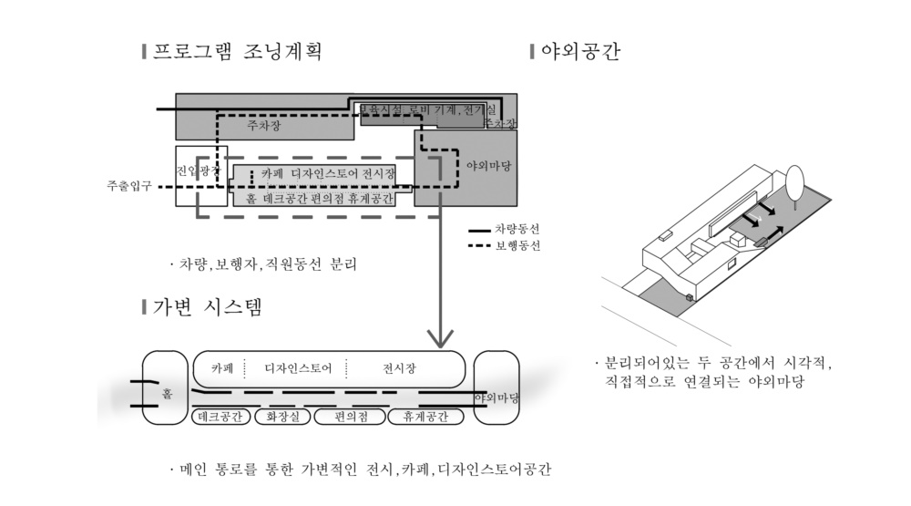 - 두 가지 성격의 진입마당과 옥외 강원 디자인마당 형성