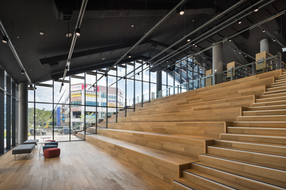 산책로와 연계해 프로그램을 선형으로 배치하고 학습, 열람, 휴게 등 필요한 공간 형태를 단면으로 구성해 중첩시켜 하나의 유연한 공간으로 만들었다. 이를 통해 내·외부 공간의 시각적 연계와 다양한 공간감은 기존 도서관과 달리 공원 속 수변과 어우러져 카페처럼 편한 휴게 공간, 자유롭게 책을 보는 서점, 학생들이 공부하는 독서실, 취미를 배우는 문화센터 등과 같이 다양한 모습을 담아 주민의 소통과 교류의 장소가 되도록 계획했다.