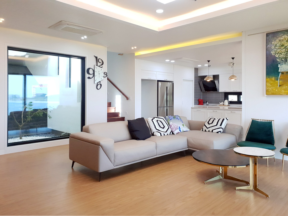 Haepumchae Village Kang-An Dang Architect | Kim, Sunggon _ Sung Architects Group Client | Lee, Jeongyoon / Kim, Cheolwoo Supervisor | Kim, Sunggon _ Sung Architects Group Construction | Lee, Jeongyoon / Kim, Cheolho(Owner direct control) Project team | Nam, Chungheon Location | 1753-12, Joseonteukgu-ro, Donghae-myeon, Goseong-gun, Gyeongsangnam-do, Korea Program | House Site area | 1,746.00㎡ Building area | 225.09㎡ Gross floor area | 191.81㎡ Building to land ratio | 12.89% Floor area ratio | 10.99% Building scope | 2F Structure | RC Exterior finishing | Stucco, C-Black Interior finishing | Silk wallpaper, Marble Design period | Mar. 2018 ~ May 2018 Construction period | Oct. 2018 ~ Oct. 2019 Photograph | Sung Architects Group Structural engineer | Won Structure Mechanical engineer | All Eengineering Electrical engineer | All Eengineering Fire engineer | All Eengineering |