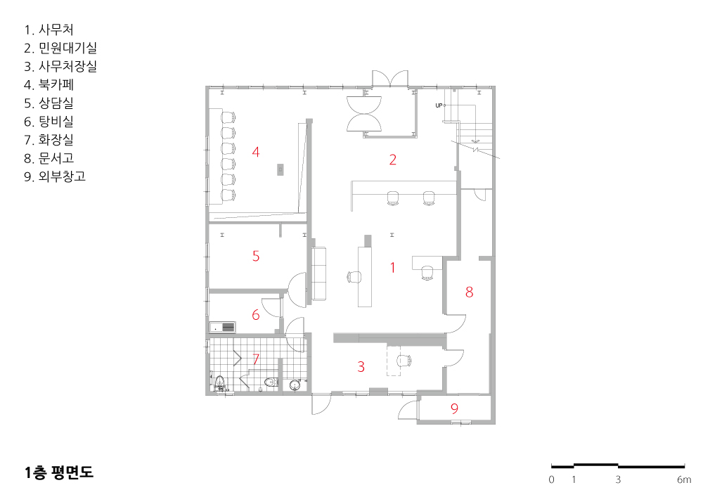 Incheon architect hall 2019 Architect | Park, Jaehyung _ ANC Architects Client | Incheon architect hall 2019 Supervisor | Park, Jaehyung _ ANC Architects Construction | Kim, Deokho _ Hyeondaeteuksugeonseol Project team | Lee, Miseon Location | 203-1, Jemullyang-ro, Jung-gu, Incheon, Korea Program | Neighbourhood living facility Site area | 227.80㎡ Gross floor area | 330.63㎡ Floor area ratio | 145.14% Building scope | 2F Structure | Wooden, RC Exterior finishing | Windows - Low-e glass Wall - Air Ro Siding Plus ST110 Roof - EI-Onsemiro Interior finishing | Red clay mortar, Wallpaper Design period | Jun. 2019 ~ Jul. 2019 Construction period | Jun. 2019 ~ Sep. 2019 Photograph | Kim, Jaekyung / Park, Jaehyung Structural engineer | Pitkwaul Mechanical engineer | Visang ENC Electrical engineer | Visang ENC |
