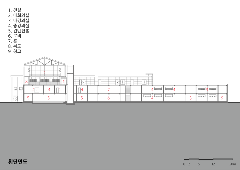 A central hall is designed between the two buildings of the existing school to be connected together and serve as an exhibition hall for various events. The two existing school buildings are connected to each other to enhance utilization as a cultural facility and produce various cultural spaces.