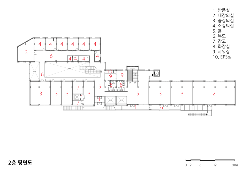 MJ Art Center Architect | Park, Jongyeon _ Jung Ang Design architecture Client | Gangneung City Hall Supervisor | Han, Jinseok _ Jiin Architects Construction | Jung Ang Design Construction Project team | Jung, Woosuk / Son, Hyunui / Shin, Jungeun / Chang, Juhyun Location | 9-1, Gyeonggang-ro 2021beonan-gil, Gangneung-si, Gangwon-do, Korea Program | Education reseach facility Site area | 7,220.00㎡ Building area | 1661.87㎡ Gross floor area | 3,706.52㎡ Building to land ratio | 23.02% Floor area ratio | 51.34% Building scope | 3F Structure | RC Exterior finishing | Stucco, Galvanized sheet iron, Brick, Polycarbonate Interior finishing | Vinyl tile, Epoxy, Water paint, Interior film above MDF, Sound-absorbing tex Design period | Sep. 2013 ~ Dec. 2014 Construction period | Dec. 2014 ~ Aug. 2016 Photograph | Jeon, Wooree Structural engineer | Muhan Partners Co., Ltd. Electrical engineer | Daehyeon Degine |