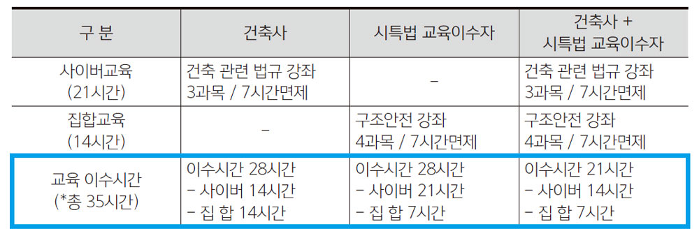 ▹ 시행일 전 교육방법 : 사이버교육(21시간) + 집합교육(14시간)