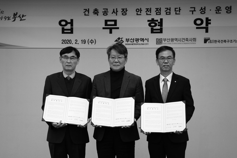 협약에는 부산광역시건축사회를 비롯한 부산광역시, 한국건축구조기술사회 영남지회, 한국산업안전보건공단, 소방본부가 함께 참여했다. 이는 기존 행정이 진행하던 건축공사장 점검에 민간 전문가들의 재능기부를 더하고, 증가하는 건축 공사장 안전사고 예방 및 체계적인 안전관리 실시를 위한 것이다.