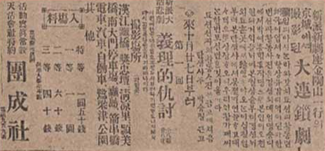 오는 27일부터 본 단성사에서 봉절개관을 하고 대대적으로 상장하오니