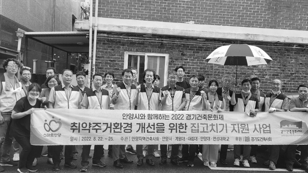 경기도건축사회 안양지역건축사회는 ‘2022 경기건축문화제’의 일환으로 진행하는 ‘집고치기 지원 사업’을 8월 22일부터 8월 25일까지 5일간 진행했다. 이는 경기도건축사회와 안양지역건축사회의 재정지원을 통해 주거 취약계층의 주거환경 개선을 돕는 사업이다.