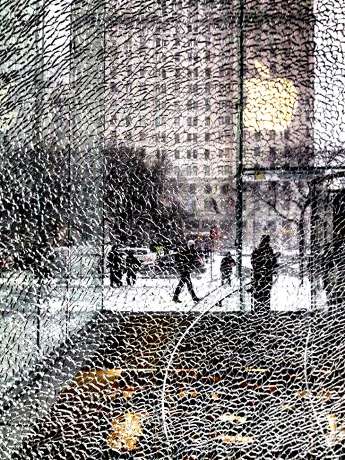 유리를 사용한 것은 탁월한 선택이었지만, 단점도 있었다. 투명한 유리는 glass cube의 디자인 의도를 잘 표현하지만, 충돌에 강한 재료는 아니다. 안타깝게도 2014년 1월 21일 제설차가 충돌하는 사고로 glass cube의 유리는 산산조각 났다. 사고의 전말은 이렇다. 뉴욕은 심한 눈보라가 몰아치고 있었고, glass cube 주변에서 제설작업 중이던 제설차가 glass cube에 충돌한 것이다. 15개의 대형 유리로 구성된 glass cube를 만드는 데, 약 670만 달러(2011년 기준)가 소요되었으니, 유리 1장당 대략 45만 달러 정도로 계산해보자. 단순 계산으로 1장에 4억 원 정도 하는 유리가 파손된 것이다.