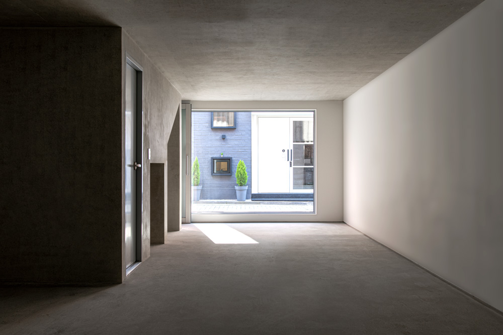 Internally, it was designed to simplify the moving lines most and to maximize the efficiency of space to be occupied by architecture on such a small site. It was also intended for people to feel the rhythm and gentleness of light, which are stemming from the harmony with the exposed concrete, inside the building by crossing darkness and brightness with the passages of light on the moving lines.