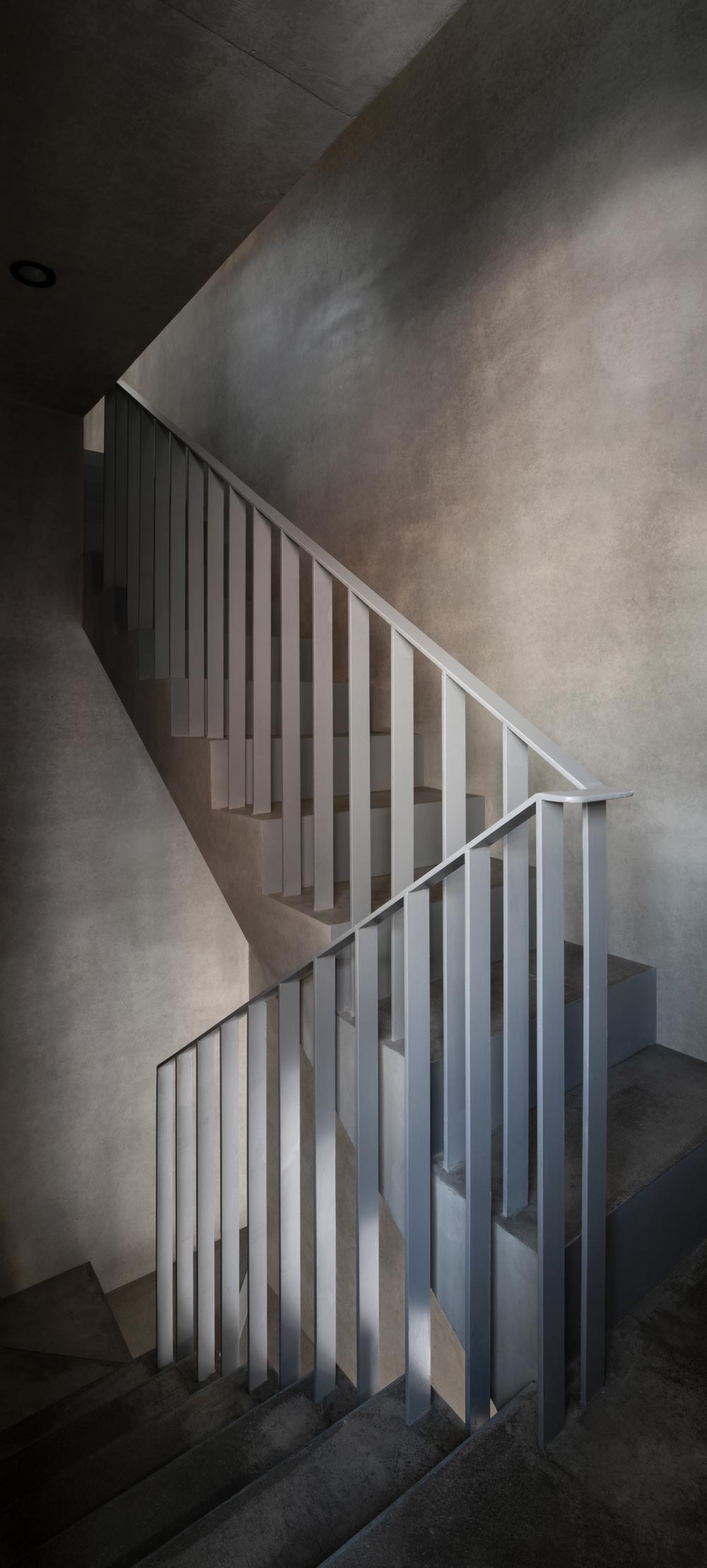 내부적으로는 동선을 최대한 단순화하며 작은 대지에서 건축이 차지할 공간의 효율성을 극대화하기 위해 디자인했다. 동선 상에서 곳곳에 빛의 통로를 만들어 어둠과 밝음을 교차시켜 노출콘크리트와 어우러져 그리는 빛의 리듬과 온화함을 내부에서도 느낄 수 있도록 의도했다.