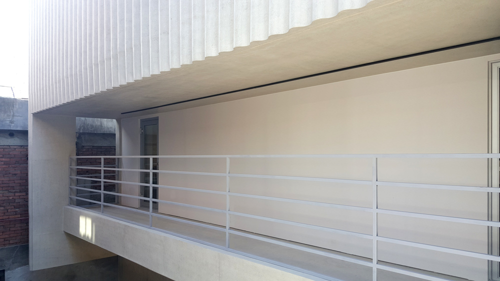 To implement wave intervals with 200mm in pitch, various mock-up tests and construction methods were attempted from the stage of forming a mold. The use of the materials for construction and decoration was minimized in both inside and outside the architectural space to implement the texture of exposed concrete to realize the essence of art. This is an architectural outcome containing the intention of the building owner to remember the essence of art and original idea, starting with the objective of pursuing the purity of materials.The changes and flows of light drawn by the exposed concrete waveshapes look as if they are dancing in a group according to changes of the sun and try to project a trajectory of the building owner’s life, encompassing painting, dancing and music further they give a calm pictorial sensibility to the architecture and the city a calm picture.