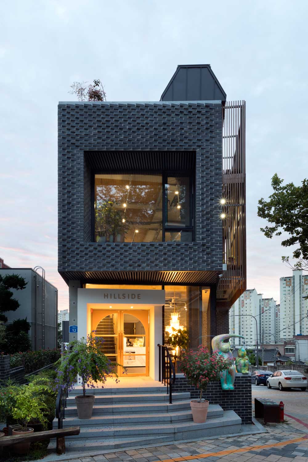 HILLSIDE YANGRIM Architect | Park, Hongguen _ FORYOU Architects Client | Yoon, Yeongdon Supervisor | Park, Hongguen _ FORYOU Architects Construction | Han Ga Lam construction Co., Ltd Project team | Lee, Donggeun / Yang, Jeongju Location | 12, Uwolsun-gil, Nam-gu, Gwangju, Korea Program | Neighbourhood living facility Site area | 185.00㎡ Building area | 108.26㎡ Gross floor area | 328.65㎡ Building to land ratio | 58.52% Floor area ratio | 130.63% Building scope | B1 - 3F Structure | RC Exterior finishing | Bricks, Exposed Concrete, IPE Wood, Zinc Panel Interior finishing | Exposed Concrete Design period | Jan. 2018 ~ Jul. 2018 Construction period | Sep. 2018 ~ Apr. 2019 Photograph | Jo, Myunghwan Structural engineer | Gug Je Engineering Mechanical engineer | Sae Teo Engineering Electrical engineer | Geo Sung Engineering Fire engineer | Geo Sung Engineering |