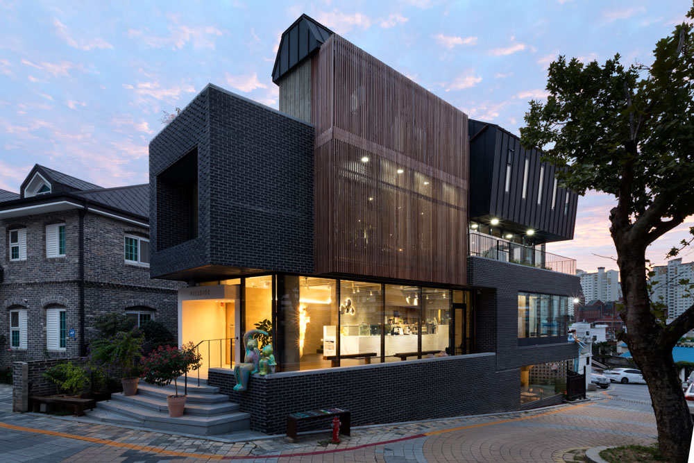 주요 외장재는 인근 문화재와 주변에 흐르는 맥락을 고려하여 2층까지는 전벽돌을, 3층은 미송판재 문양의 노출콘크리트와 징크를 사용했다. 돌출되어 있는 좁은 폭의 목재(이페목) 루버는 매스 분절 면과 넓은 유리창, 재료분리 등을 하나로 묶으면서 내·외부 풍경을 조절하기 위한 장치다. 이는 매스변화와 시선흐름의 필터 기능을 하리라 기대한다.
