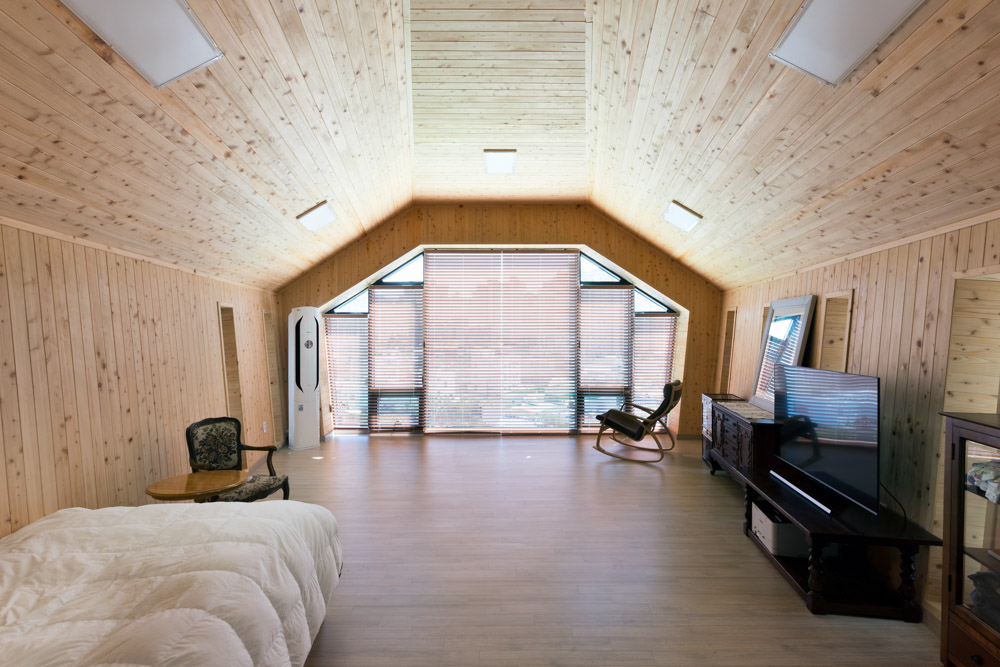 Using the slope, the basement and parking space are placed, the first floor is slightly lifted up so that a similar mass is built up to the second floor through indoor stairs. With unevenness in the mass, the three sides are lightly treated with open windows so that the surrounding landscape and the building landscape can interact internally and externally. The third floor, under the right for sunshine, is designed to look like adding a small yet new layer, and only the eastern side that has a view of Mudeung Mountain is largely opened, whereas other sides are blocked. This is to make it a cozy resting place, and naturally allow the combination and segment of the whole mass.