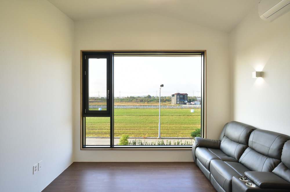 The windows of the building are located and sized in consideration of interior lighting, view, and function, and contain the landscape of Pyeongtaek Plain which changes with seasons and time.