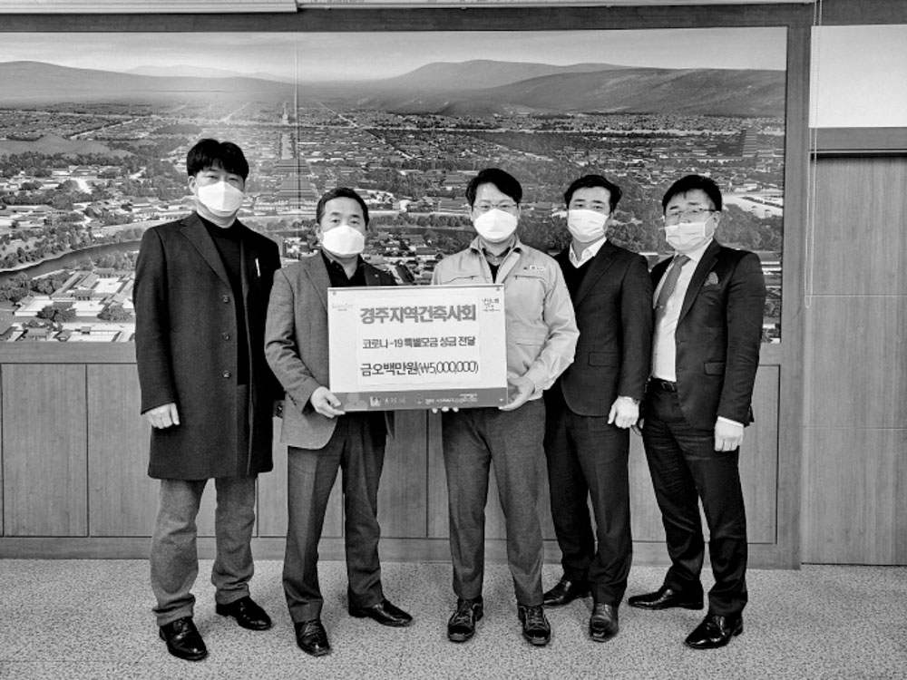 경주지역건축사회는 코로나19 관련 성금 500만 원을 경주시에 기탁했다고 3월 4일 밝혔다. 성금 기탁을 위해 경주시청을 방문한 최규식 경주지역건축사회 회장은 “코로나19로 어려움을 겪는 분들이 많을 것이라 생각되어 뜻을 모아 나눔에 참여하게 됐다”면서, “지역 건축사들의 염원이 담긴 만큼 꼭 필요한 곳에 쓰일 수 있기를 바란다”고 기탁의 뜻을 밝혔다. 이영석 경주부시장은 “코로나19로 시민들뿐 아니라 건축업 또한 어려움을 겪을 것이라 생각되는데 먼저 앞장 서서 도움을 주셔서 감사드린다”면서 “코로나19 대응에 최선의 노력을 하겠다”고 전했다. 이날 전달된 성금은 코로나19 대응에 필요한 물품 구입 등으로 지원될 예정이다.