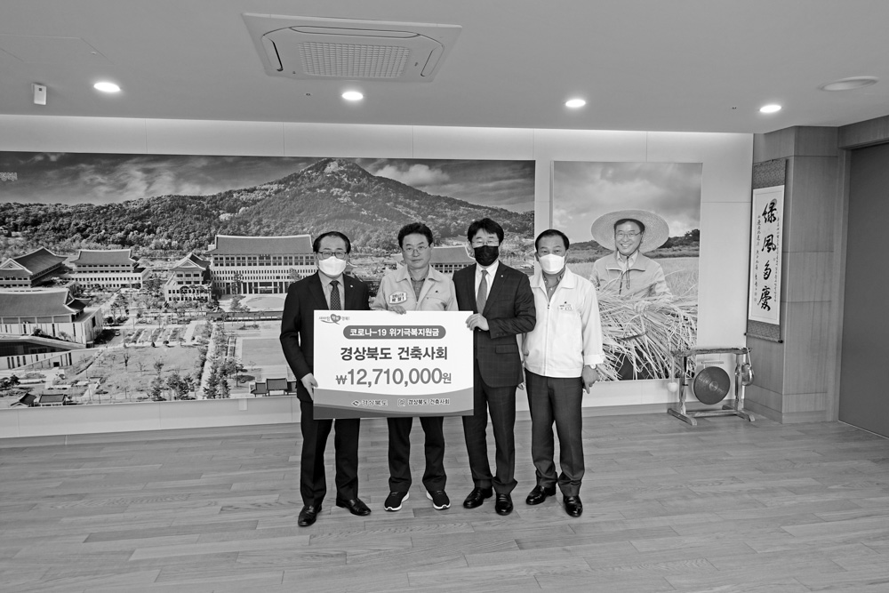 경상북도건축사회(이하 경북건축사회)는 3월 13일 코로나19 극복을 위한 성금 1,271만 원을 경상북도(이하 경북도)에 전달했다고 밝혔다. 성금을 전달받은 경북도 관계자는 “코로나19로 인해 많은 단체들이 피해를 입었음에도 불구하고 국민의 안전과 코로나19 예방을 위해 성금을 보내준 경북건축사회에 깊은 감사의 뜻을 전한다”고 말했다. 성금 기탁을 위해 도청을 방문한 경북건축사회 방재원 회장은 “경북 지역은 코로나19로 인해 많은 도민들이 어려움에 처해 있다”면서 “경북건축사회 소속 회원들이 십시일반으로 마련한 성금이 현재의 위기상황을 극복하고 헤쳐 나가는 데 힘이 되길 희망한다”고 밝혔다.