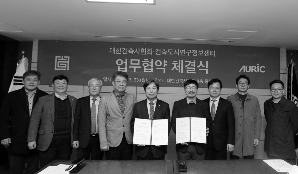 대한건축사협회가 3월 23일 서울 건축사회관 8층 중회의실에서 건축도시연구정보센터와 건축·도시 정보를 교류하고 개발하기 위한 업무협약을 체결했다.