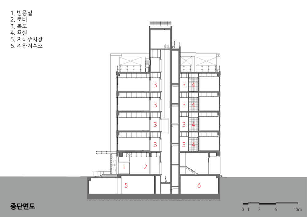 CUBE Hotel Renovation Architect | Choi, Seungyong _ Myeong Jin Architects Client | Yun, Deokyong Supervisor | Choi, Seungyong _ Myeong Jin Architects Construction | (Co)Sesang Project team | Choi, Jangsoon / Yu, Boksoon Location | 431, Changhae-ro, Gangneung-si, Gangwon-do, Korea Program | Accommodation Site area | 795.50㎡ Building area | 473.23㎡ Gross floor area | 2699.02㎡ Building to land ratio | 59.49% Floor area ratio | 250.49% Building scope | B1F – 5F Structure | RC Exterior finishing | AL panel, Insulation, Silicone paint Interior finishing | AL ceiling, Granite, Ceramic tile Design period | Jan. 2016 ~ Apr. 2016 Construction period | Apr. 2016 ~ Jun. 2017 Photograph | James Jung Structural engineer | NEO ENI Ltd Mechanical engineer | Sin Ho ENG Electrical engineer | Sin Ho ENG Fire engineer | Sin Ho ENG |