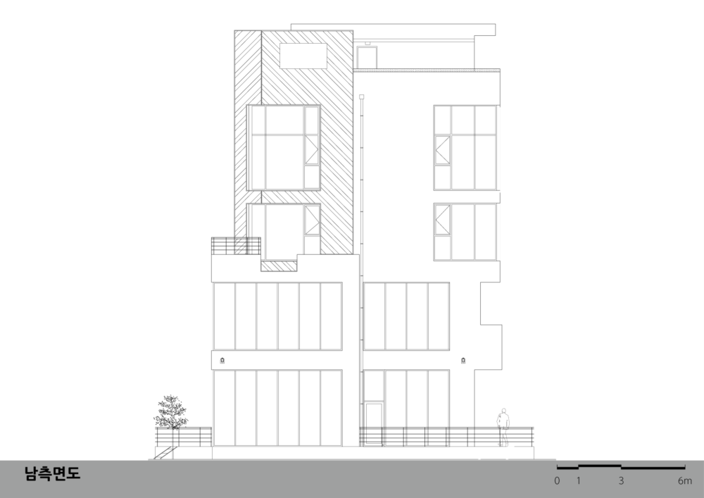 Due to the large size of site, basic layout of the building was to be a 'ㄱ shaped' mass of traditional space rather than 'ㅡ shaped' mass. I wanted to give a sense of chic and youthful lightness through the change in the building axis of the first and second floor retail shop and the third and fourth floor pension. Mass design was revised several times using 3D graphics. The client requested that the building identity and the signboard must be recognized from the coast road connected from Gyeongpo to Jumunjin, and I had to combined this with the design concept that I presented during the design period. The axis was set as a functional 'ㄱ-shaped' for the retail and the axis of the pension was slightly twisted to 165°(15°), and the fourth floor was determined to be a two-storied type. After agonizing decision making, it was born as a differentiated building from the existing buildings around Gyeongpo.