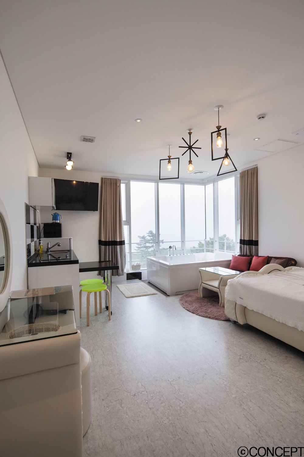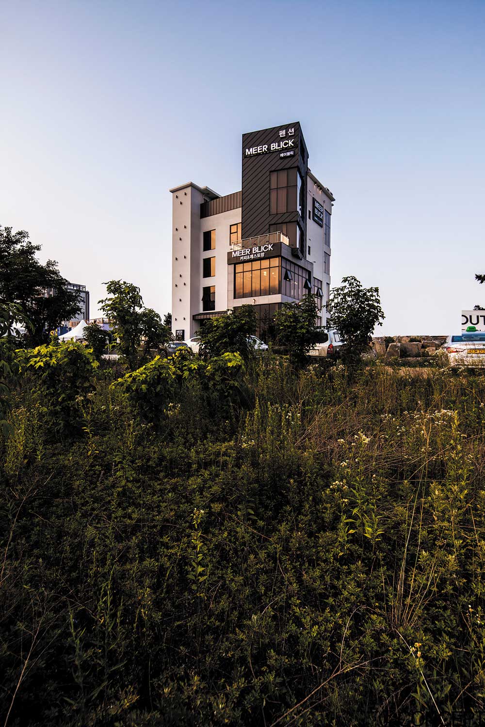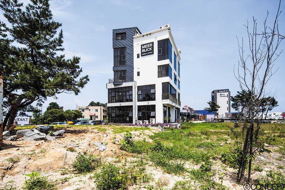Gangneung, the host city of the 2018 Winter Olympics, faces new challenges. The first is to create sustainable tourism demand after the Olympics and the second is eco-friendly development and conservation of the coast of the East Sea(500M from the coast). This project is a building in the center of the context covered with so many container buildings in a wild sand field. It was born as a product of hard efforts to restrain the facade design element as a simple mass and elevation for a coast-friendly building rather than reckless development. I pursued the minimal design according to the same principle of interior material properties and facilities