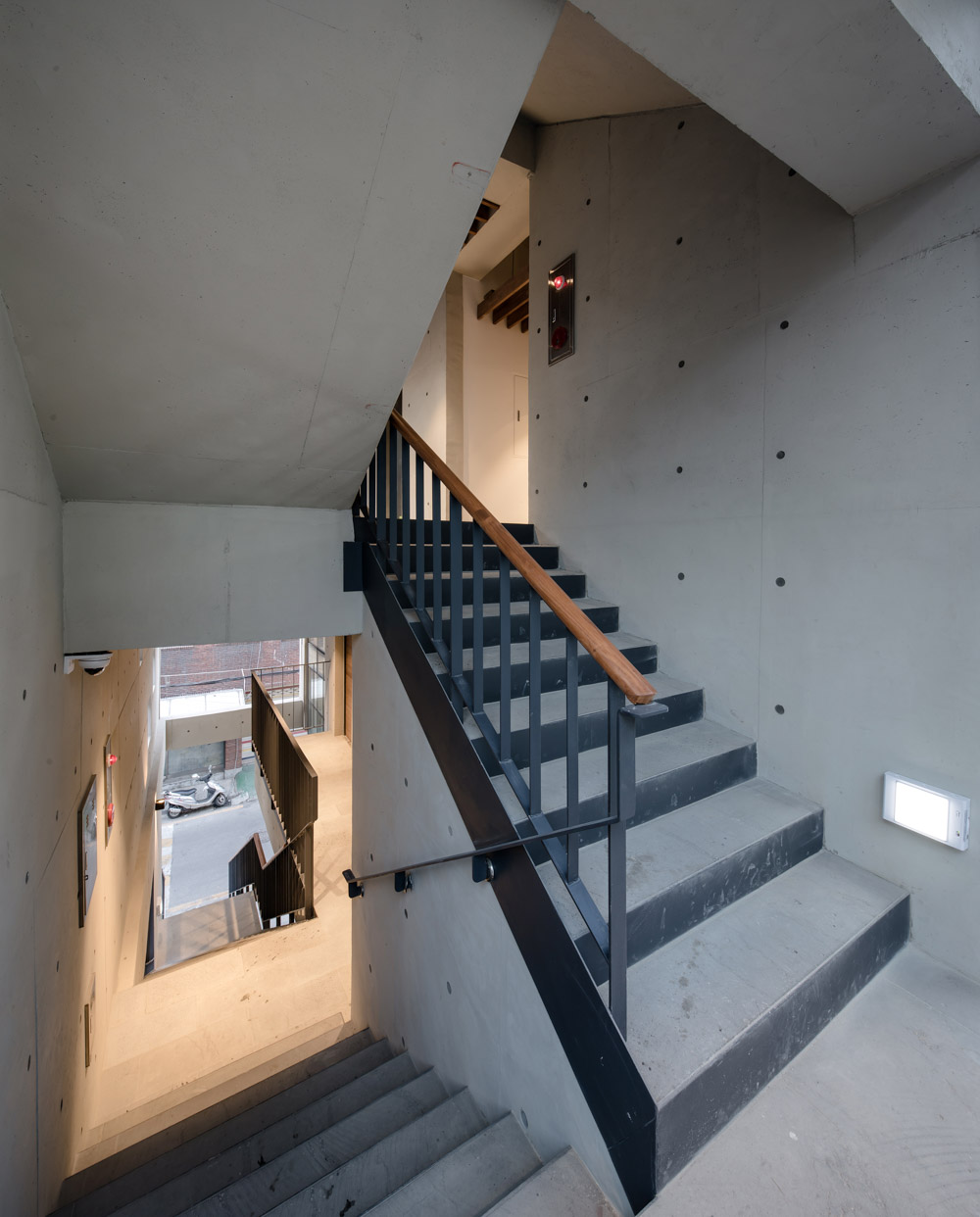 또한 계단실을 오르내리면서 만나는 깊이 있는 풍경은 새로운 도시를 경험하게 만든다. 공용 계단의 홀도 테라스를 두고 있기에 채광과 조망을 동시에 해결할 수 있다. 이처럼 다양한 도시의 풍경이 담긴 건물은 기계적인 사용자의 일상에 활력을 주는 공간적인 역할을 할 것이다.