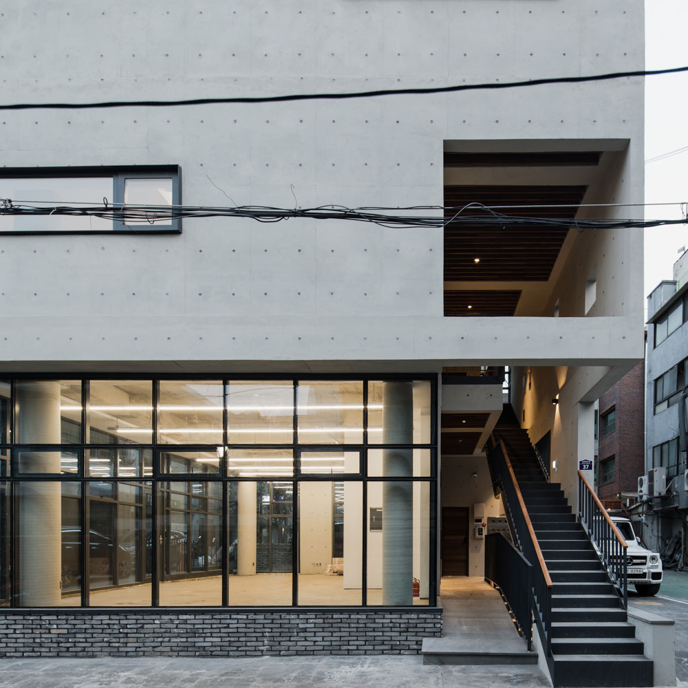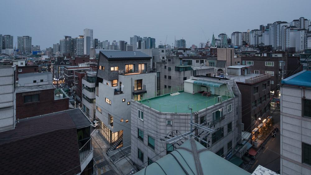 In the case of building with a mixed commercial & residential program, it is important to make them a good single building where profitability and livability coexist. What is livability in the urban dwelling? We thought of residence with a terrace where the interior and exterior spaces relate to each other. The terrace is a double-storied structure and is actively engaged with the interior room. The fourth floor is a practical terrace connected to the kitchen, and the fifth floor has created a courtyard that connects directly to the master bedroom and the family room. In particular, the yard connected to the family room leads the inside hall to the outside veranda, making the inside and outside more closely related.