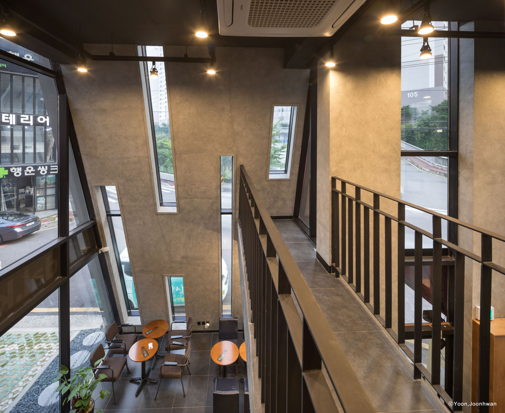 아파트로 밀집된 도시에 새로운 변화를 만들고 이미지 측면에서 균형을 유지하고자 곡선을 사용했다(일조권에 대응한 기능적인 부분도 있음). 아파트라는 삭막한 동굴에서, 물을 먹고 자라는 석순 같은 이미지의 건축물을 만들고 싶었다. 지상 바닥에서 시작한 곡선 벽면이 내부 공간에서 연속성을 가지며 그대로 전달될 수 있도록 했으며, 카페로 계획했을 당시 곡선 부분에 각종 가구와 고객을 위한 다양한 공간을 구성했다. 아쉽게도 공사 도중 건축주의 사업 계획이 변경되면서 내부 인테리어는 진행되지 않았다. 바로 임대 건축물로 전환되는 바람에 모든 계획이 반영되지 못한 아쉬움이 있다. 1층과 2층 단위에서 그리고 4층과 5층 단위에서는 수직적으로 연결된 공간을 만들어 내부공간에서 곡선의 느낌이 극대화되도록 했다.
